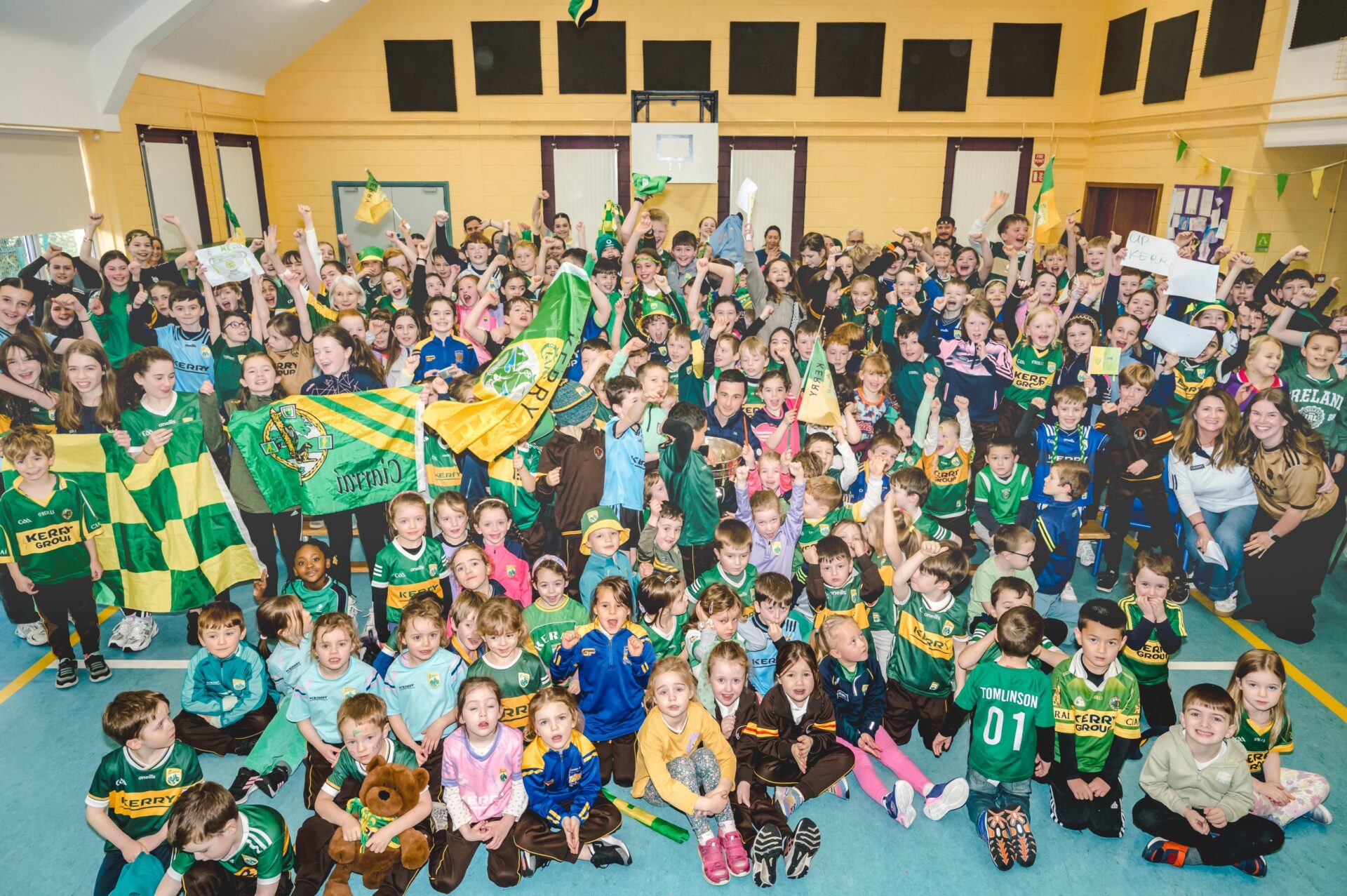 The All-Ireland medal winner, a native of Rathmore, received an "electric" and "enthusiastic reception" from the school's 270 pupils, who lined the grounds to greet him. According to the school, the children were "absolutely on fire with excitement."