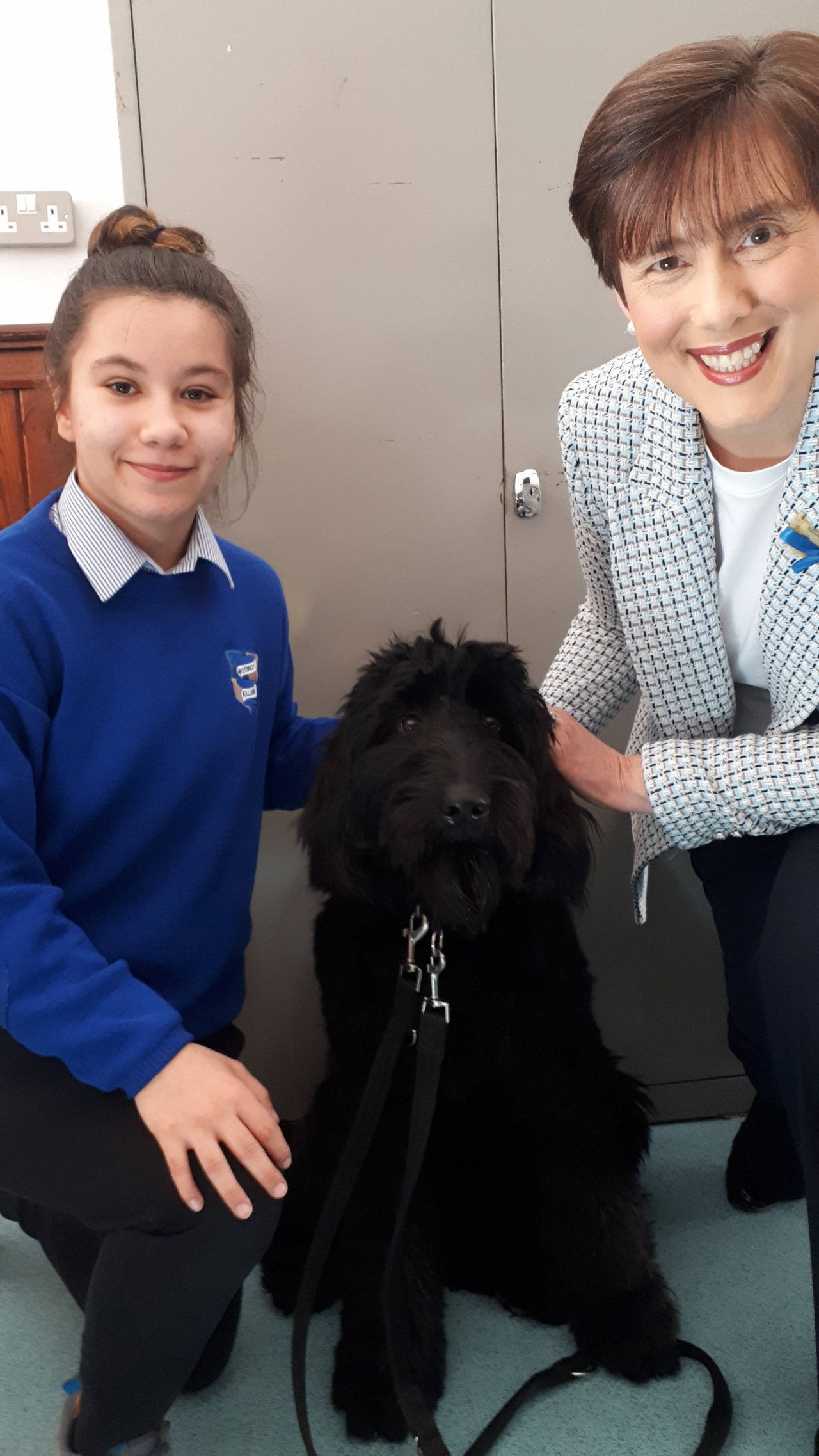 Minister Foley chatted with many students and staff, visited the ASD class where Zoomer the school's therapy dog was delighted to meet with the Minister. Minister Foley's final stop on her visit was the green field site where St Brigid's future new school will be located.
