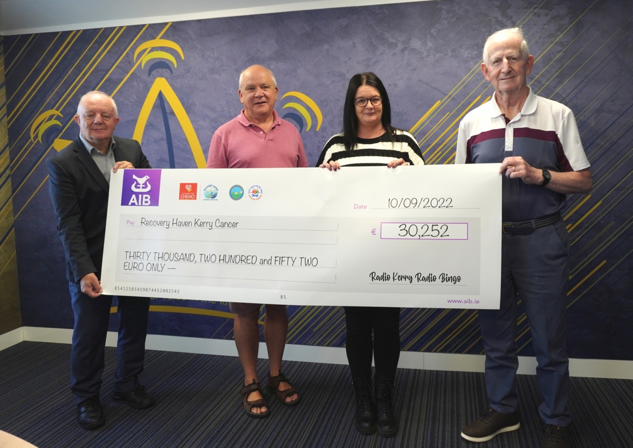The Radio Kerry Radio Bingo game is now in its second year and proceeds from the game continue to be distributed equally among the four charity partners Kerry Cancer Support Group, Kerry Hospice, Recovery Haven Kerry Cancer Support House and Comfort for Chemo Kerry.