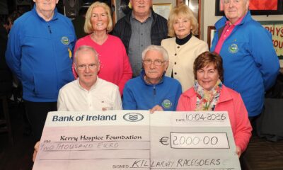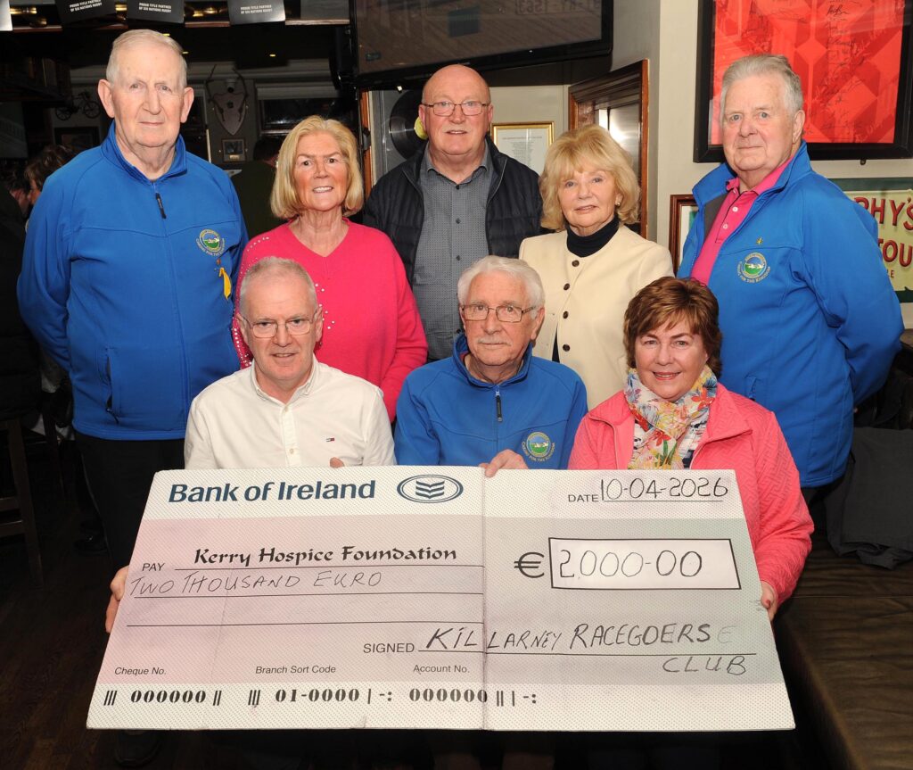 Members of the Killarney Racegoers Club pictured at Linehan’s Bar for the presentation of a €2,000 cheque to the Kerry Hospice Foundation