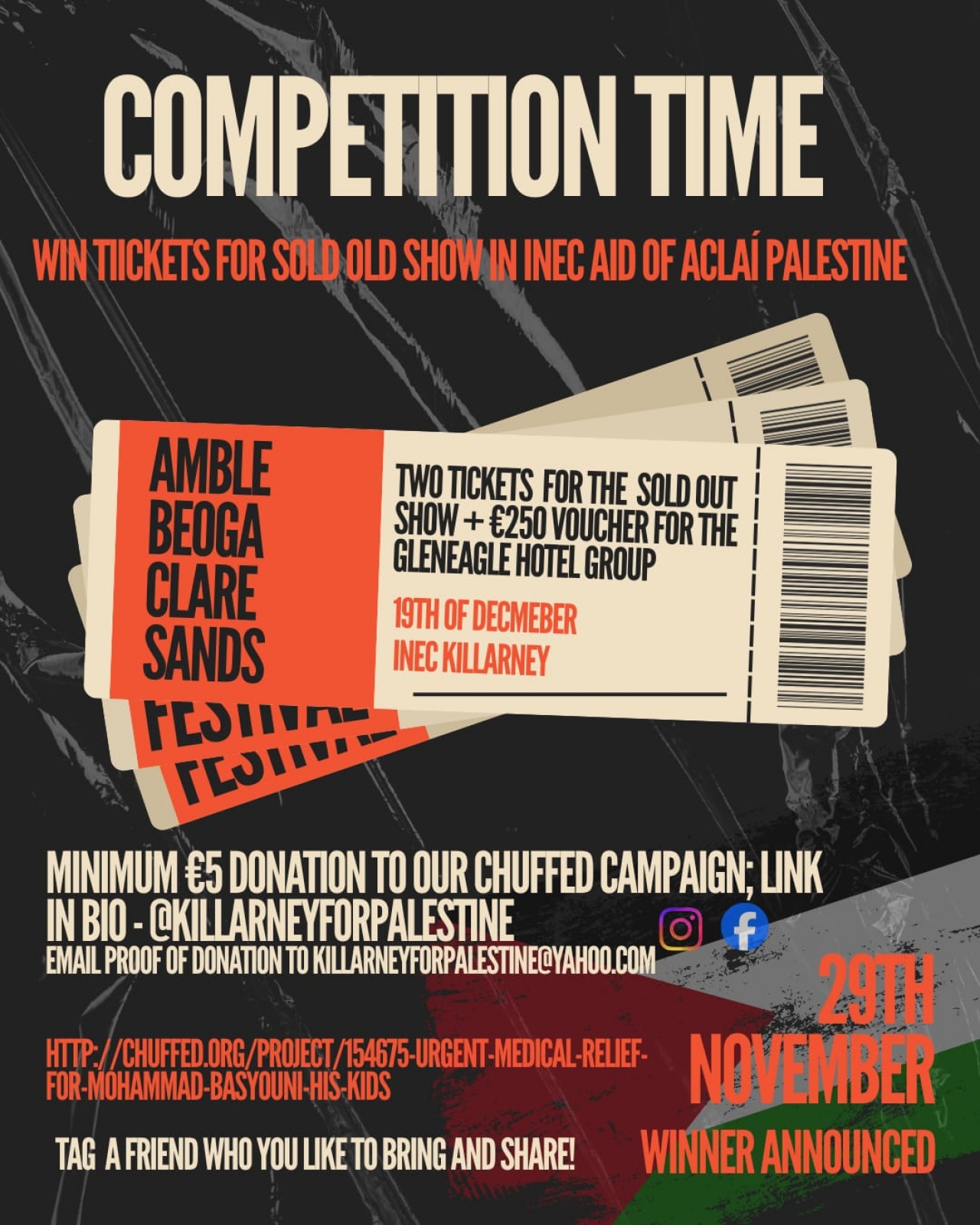 Killarney for Palestine has announced a fundraising competition that will give Killarney Advertiser readers a chance to win two tickets to the sold-out Night for Palestine concert in the INEC […]