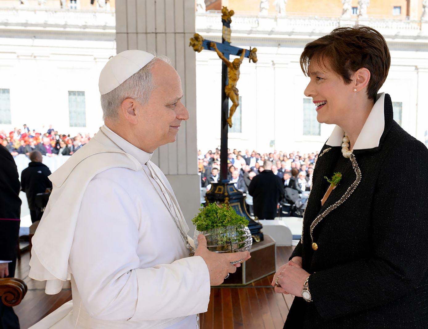 She was the first Irish government minister to meet with Pope Leo, who was elected last May following the passing of Pope Francis.