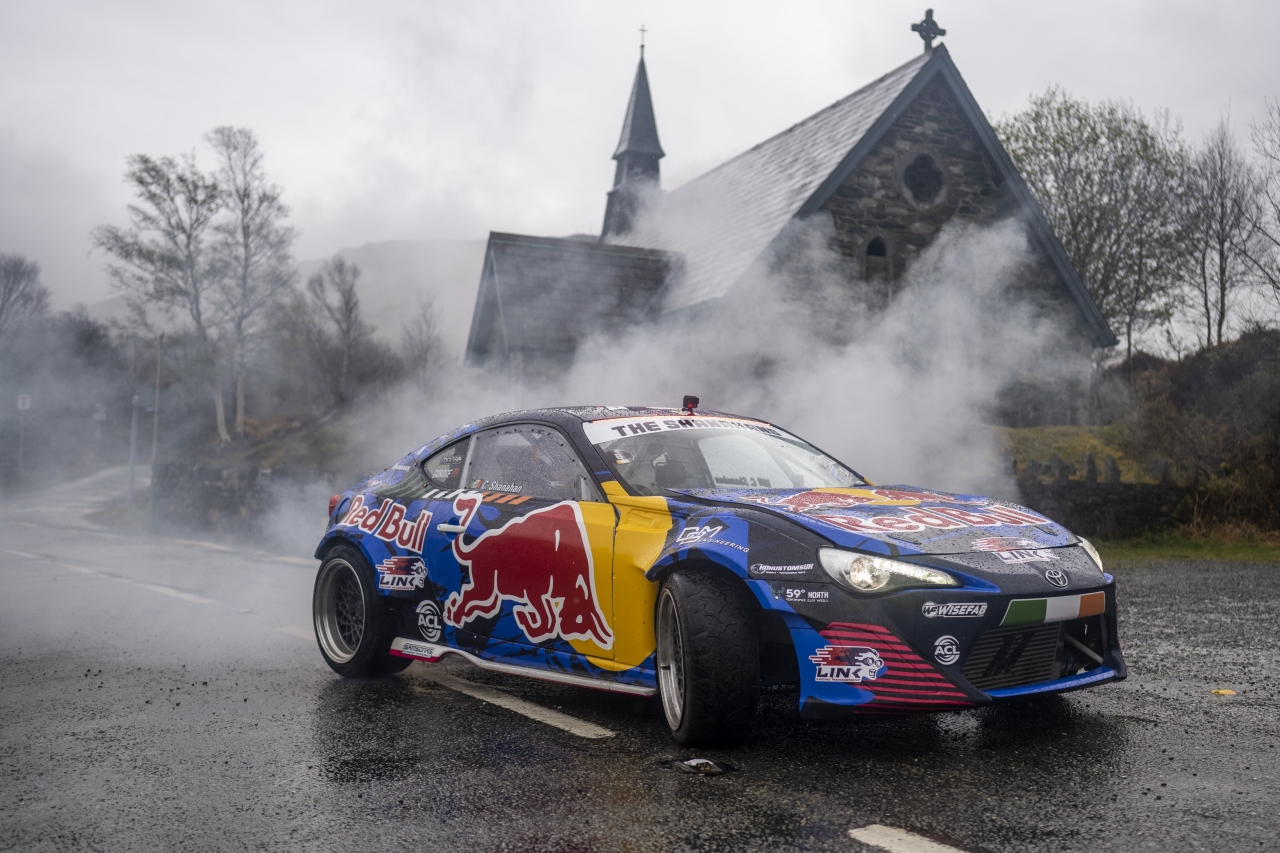 The spectacular video shows drifting champion Conor Shanahan driving his Toyota GT86 at seemingly impossible angles on the N71.