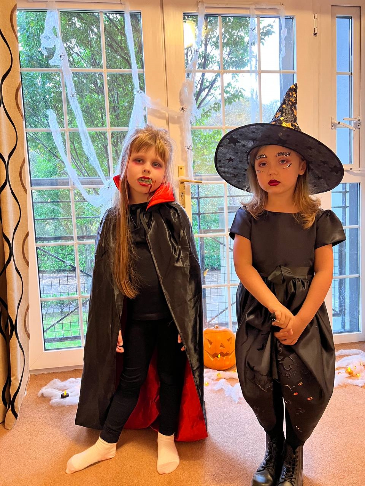 DRESS UP: Fedorchuk Mylana and Bidakh Mariia pictured dressing up for Hallowe'en for the very first time. Photo: Natalya Krasnenkova
